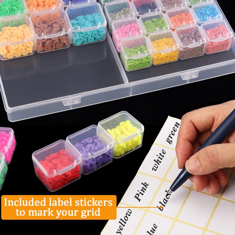 • Package includes 1 diamond art beads storage containers. Inside are 28 small boxes and 15 mid-sized boxes all with individual lids; 1 blank label sheet (110 labels in total)