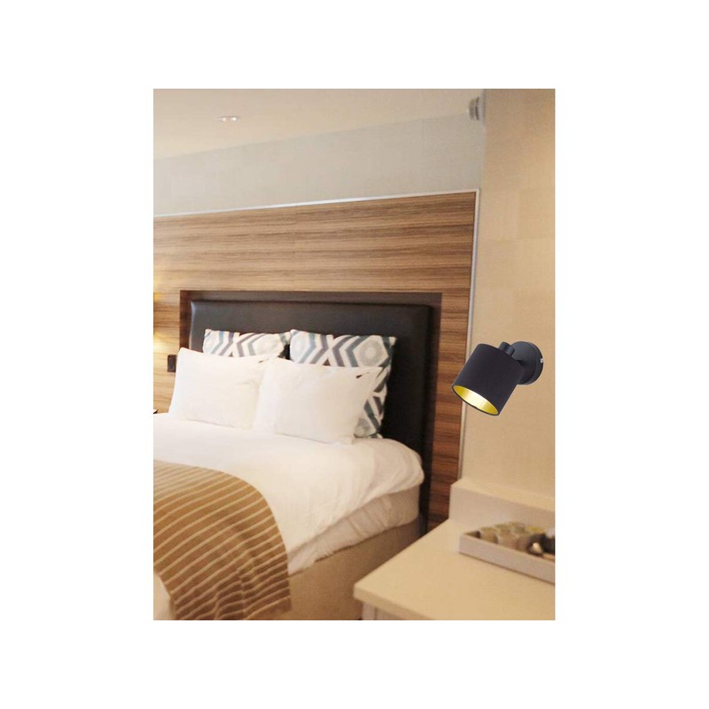 - Wand-Spot Tommy 1-flammig in Metall Schwarz matt mit einem Stoffschirm in der Farbe Schwarz/goldfarbig