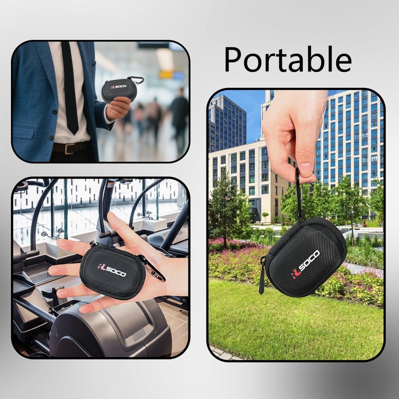 - ♬ Compact Design -- The hard case is small enough to hold headphones and accessories. The bottom holds the charging case with headphones, comes with a webbing strap for easy removal. The top pocket holds the cable and eartips. Separate storage for headphones and accessories.