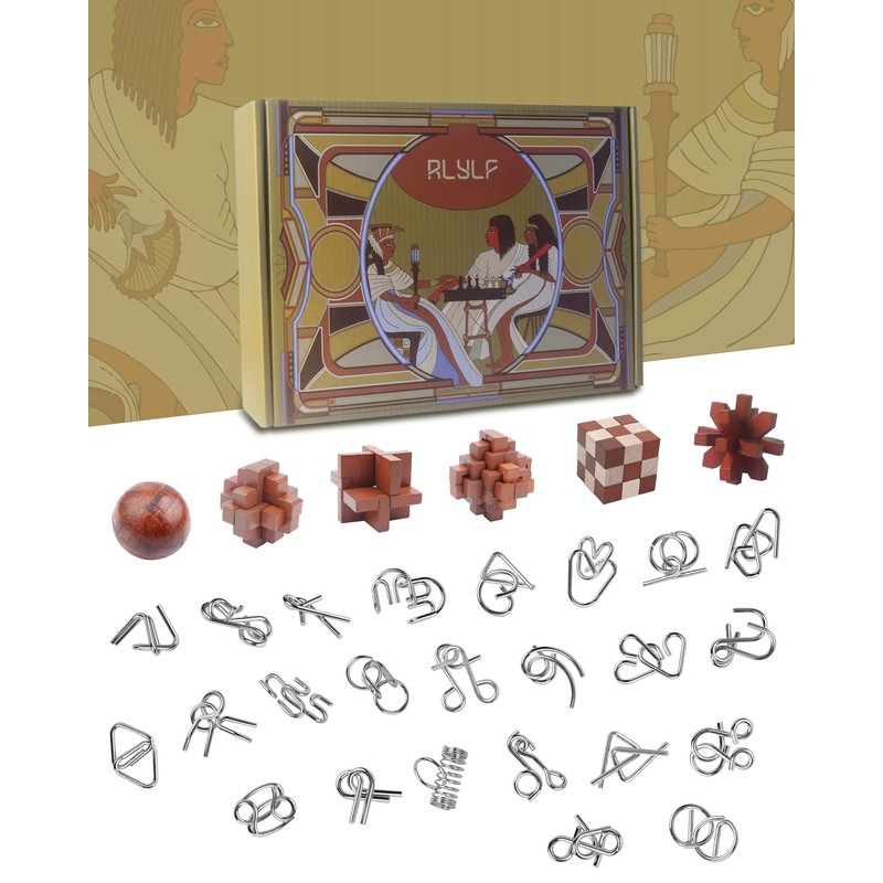 RLYLF 30pcs Brain Teaser Puzzles Game for Adults and Kids Ancient Wooden and Metal Puzzles 3D Educational Toys IQ Logic Train Family Games Party Favor Coffee Time Unlock Interlock Puzzles Box
