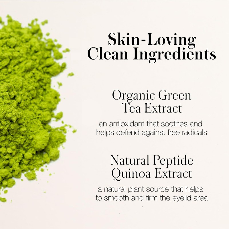 - Formulated with organic green tea and natural peptide quinoa extracts, it nourishes and smooths the delicate eye skin with each wear.