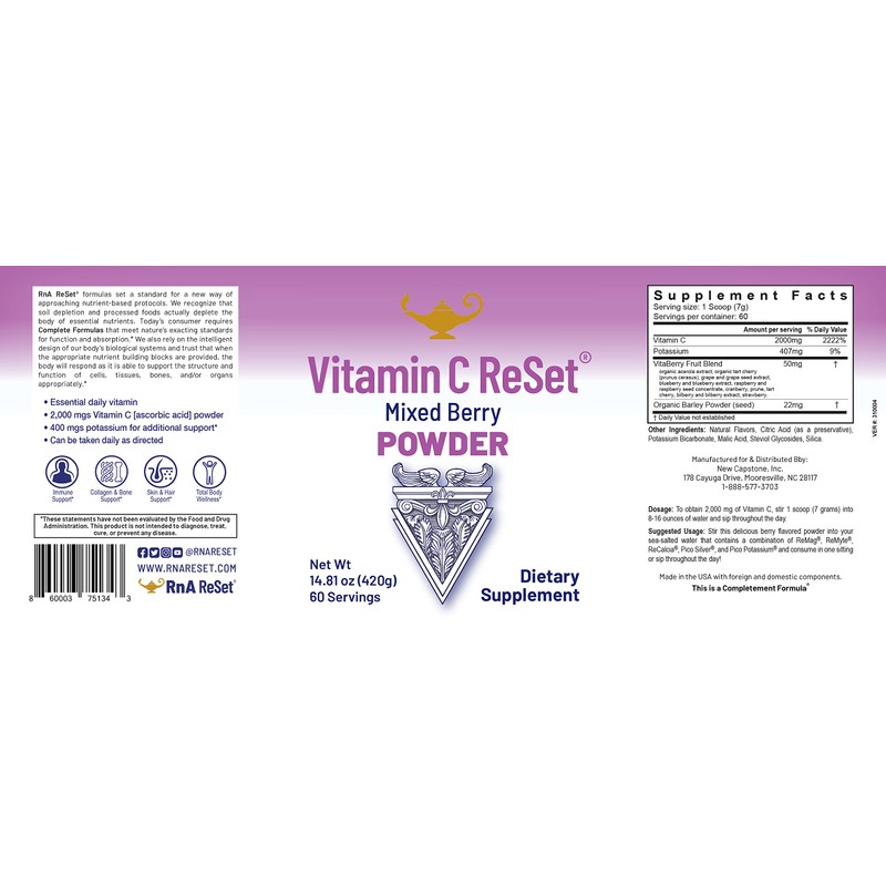 - Vitamin C ReSet» is a vitamin C powder that provides your body essential antioxidant power in a berrylicious flavor that's easy to drink. Contains the most popular and highly absorbed form of vitamin C, ascorbic acid