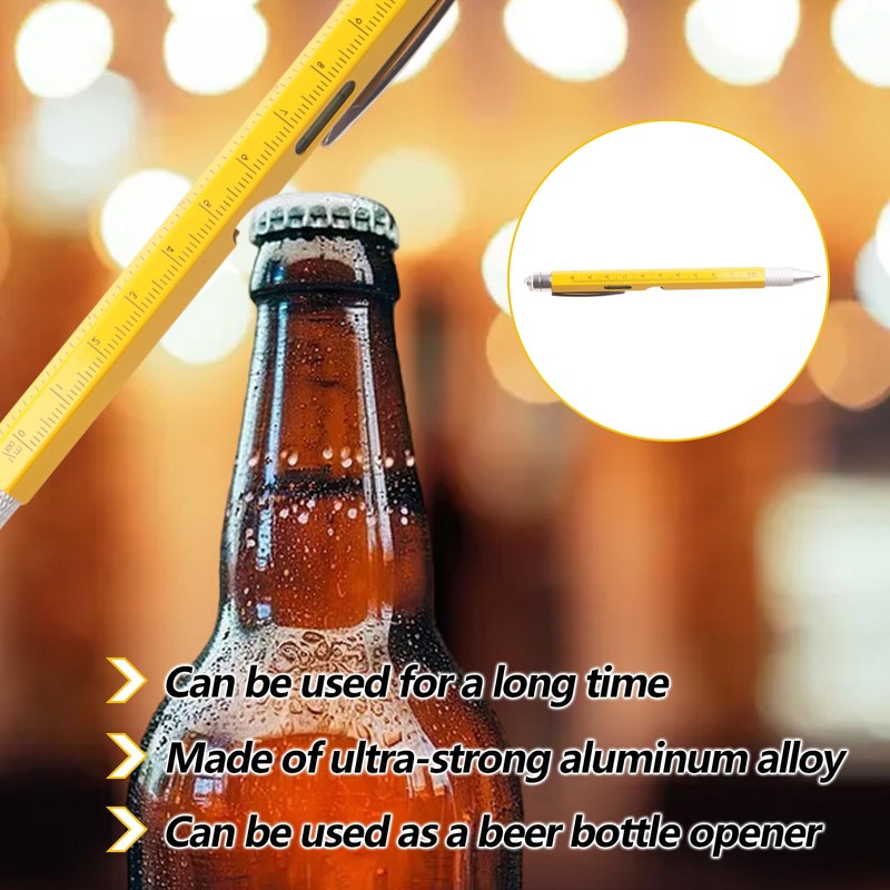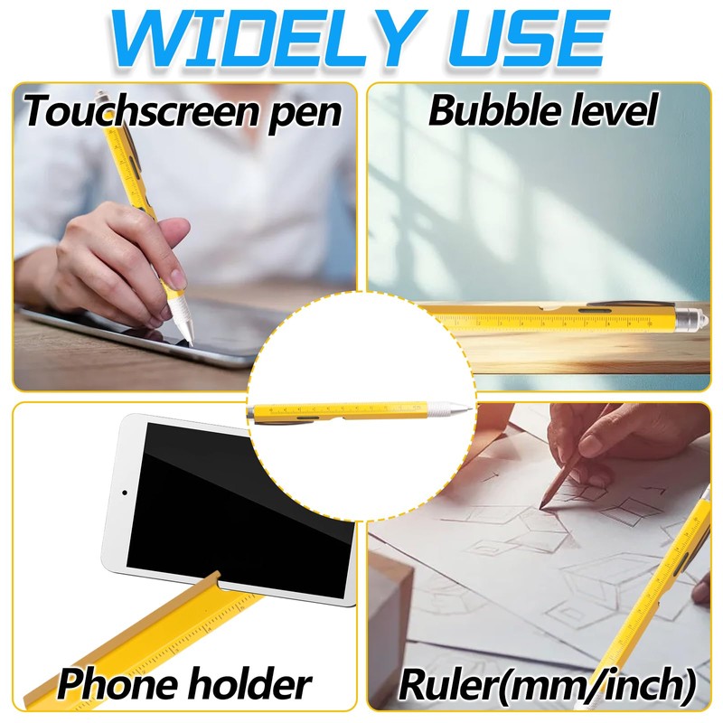 • Professional Tool Pen: Combines 9 functions in one compact steel body with aluminum/copper/ABS components. Ideal for professionals in construction, DIY, or office settings. Lightweight at 35g for easy portability.