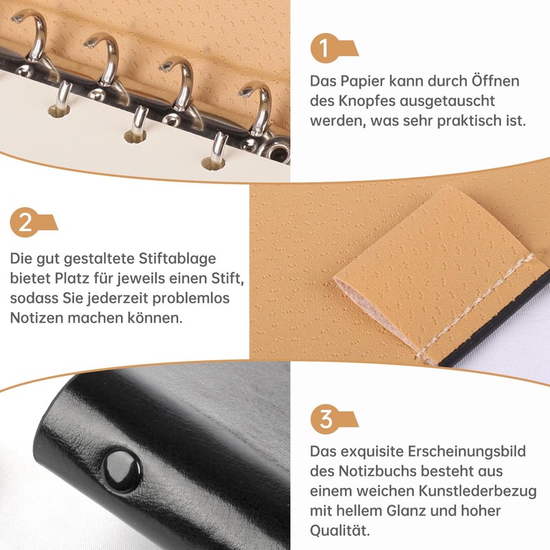 RNHDLY Notebook A7 Small Notebook, Mini Notebook 6 Ring Binder Notebook A7 Leather with Refillable Paper, Notebook A7 Ring Binder for School, Office, Writing, Drawing
