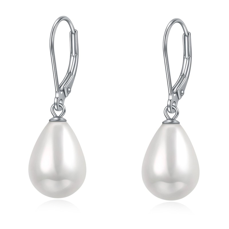 - Simulated shell pearls beads are lab created,dangle earrings with leverback are made of high quality 925 sterling silver and well-constructed,easy to put on and take off,skin friendly.