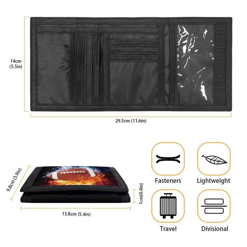 Rnyleeg Kids Wallet for Boys Girls Fire and Water American Football Wallet for for Boys Ages 8-10 Trifold Purse for Teen Girls Small Children's Wallet for Birthday School