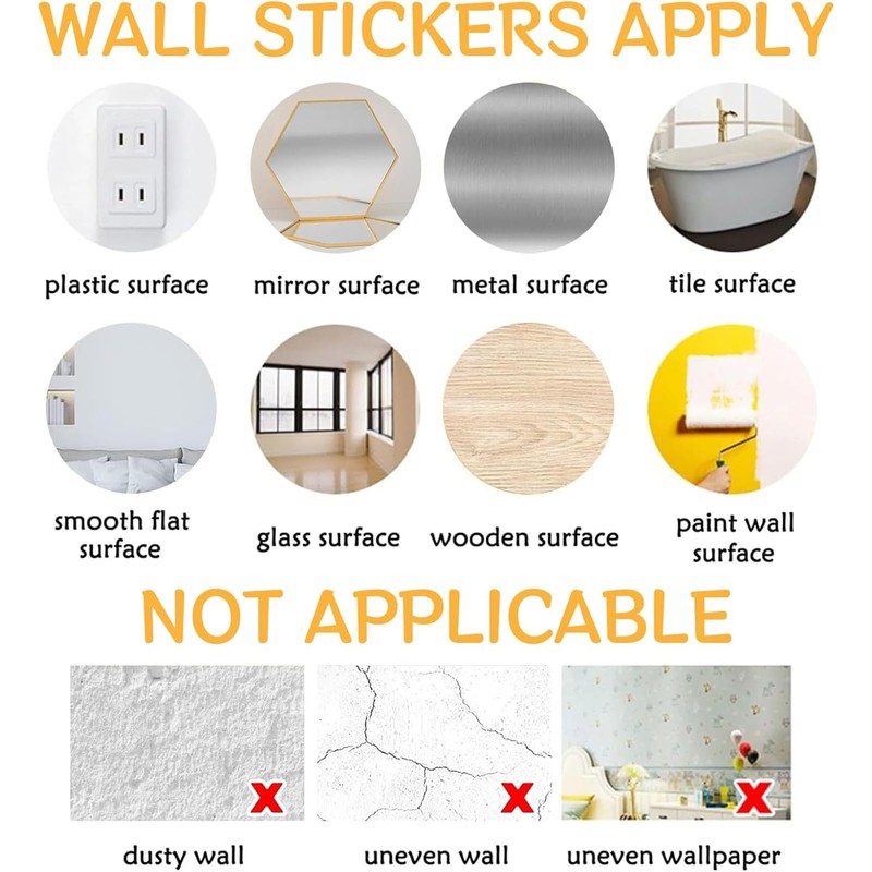 - High quality PVC material: This wall sticker is made of environmentally friendly PVC material, which is sturdy and durable, with a smooth surface, bright colors, and not easy to fade. PVC wall stickers also have waterproof function, easy cleaning, and ensure that they remain intact and new after long-term use.