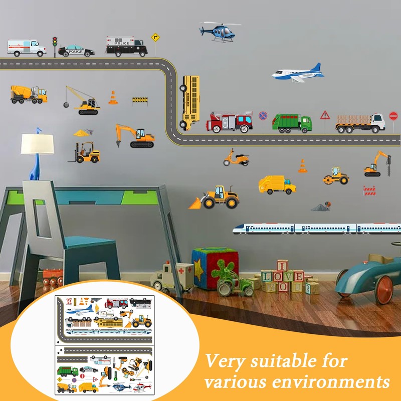 - Creative Design: The wall sticker design adopts various patterns of cars, airplanes, construction vehicles, etc., which are creative, brightly colored, and can stimulate children's imagination and curiosity. Each element is lifelike and can bring a vibrant atmosphere to children's rooms.