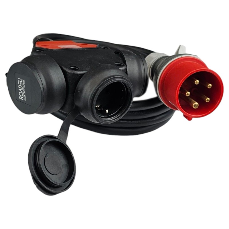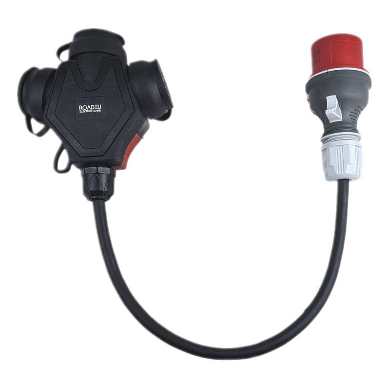 RoadEu CEE High Current Adapter, CEE Plug 16 A, 380 V to 220 V Adapter, 3 x 220 V Schuko Coupling, 5 x 2.5 mm Rubber Cable 0.5 Metre. Adapter 16 A to 230 V. High Current Distributor