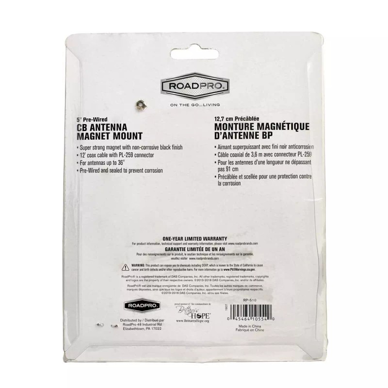 Roadpro RP-510 Multi-Purpose Magnet Black Anodized Finish, 5" w/ 12 ft. Cable