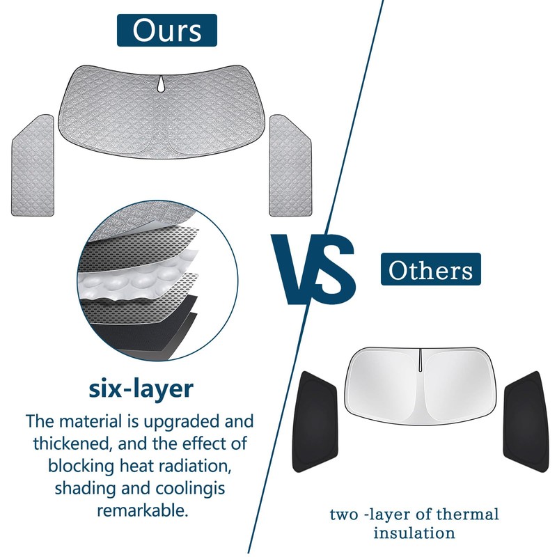 - Verdicktes Strapazierf?higes Material : Hergestellt aus dickem und haltbarem Material. Hergestellt aus aktualisiertem mehrschichtigem haltbarem Material,Die Oberfl?chenschicht ist silberbeschichtet, was das Sonnenlicht reflektieren kann, das Innere ist mit schwarzer Rckseite aktualisiert, kann das Thermorollo-Set effektiv Ihre Privatsph?re bis zu 100% schtzen, sch?dliche UV-Strahlen von Sch?den zu stoppen, was die Augen nicht reizt.