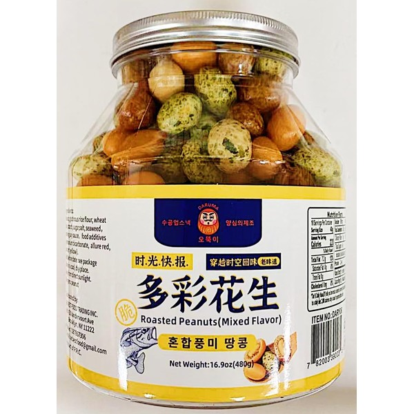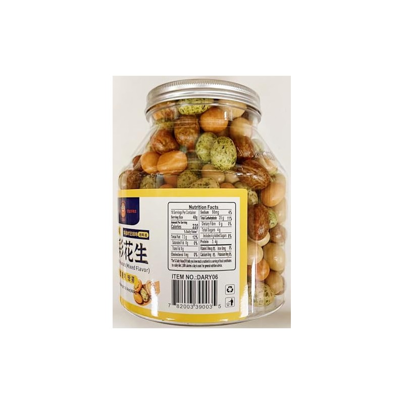 Roasted Peanuts, Mixed Flavor, 16.9oz Glass Jar 多彩花生