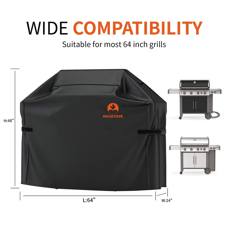 Roastove BBQ Grill Cover, 600D Heavy Duty Oxford Fabric Grill Cover for Weber,Brinkmann,Char Broil etc.(UV & Dust & Water Resistant, Weather Resistant, Rip Resistant)(64" L x 24" W x 48" H, Black)