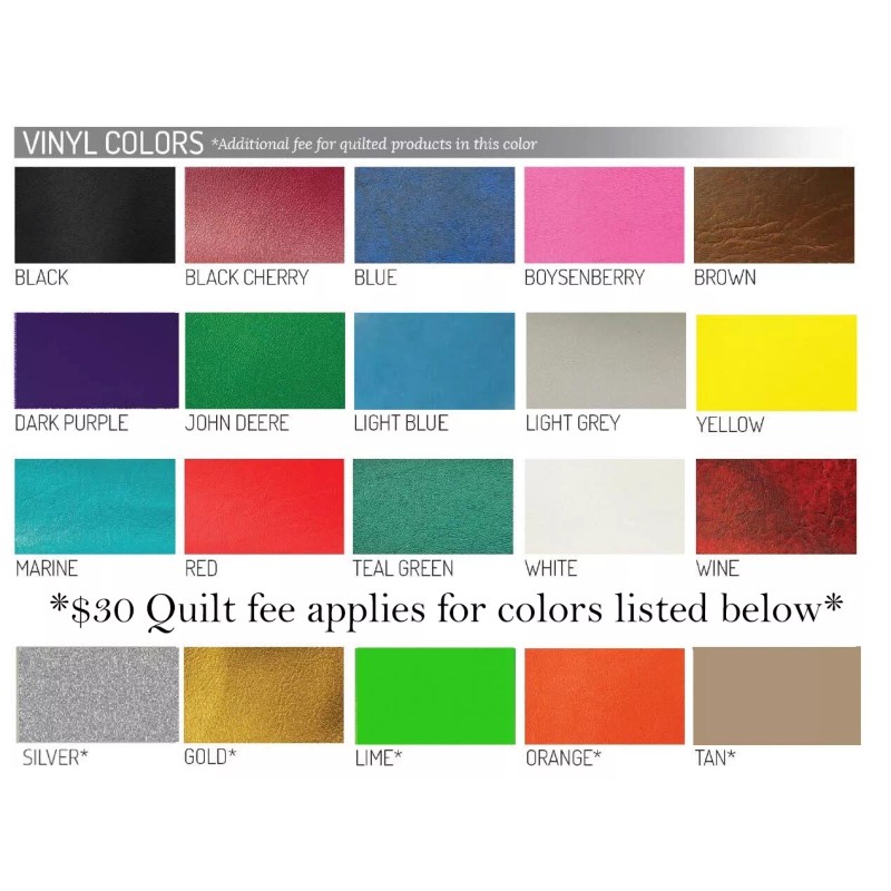 Please add Vinyl Quilting Fee to your order if choosing a color with a quilt fee.