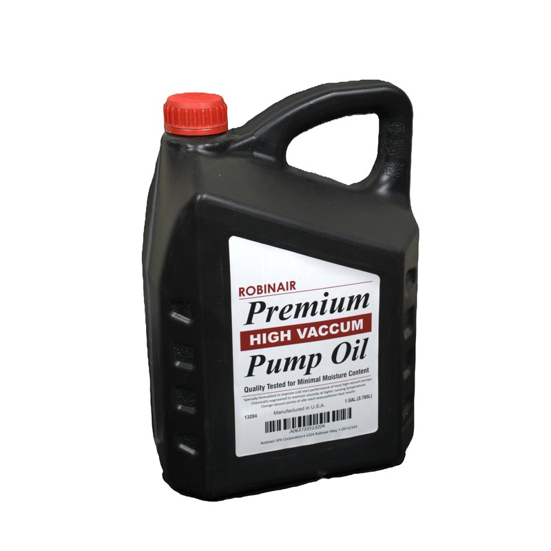 Premium oil for vacuum pumps, (4 )Four 1-gallon jugs per case. Robinair’s oil is engineered to maintain maximum viscosity at high running temperatures and to improve cold weather starts. Laboratory tests prove that Robinair oil is more thermally stable in comparison to other leading brands, which means it resists breaking down due to heat for a longer period of time. Robinair oil has a lower moisture content than other oils, thanks to our special packaging and handling procedures. Moisture degrades the oil’s purity, thinning it and reducing the pump’s ability to reach a deep vacuum.