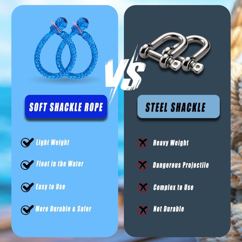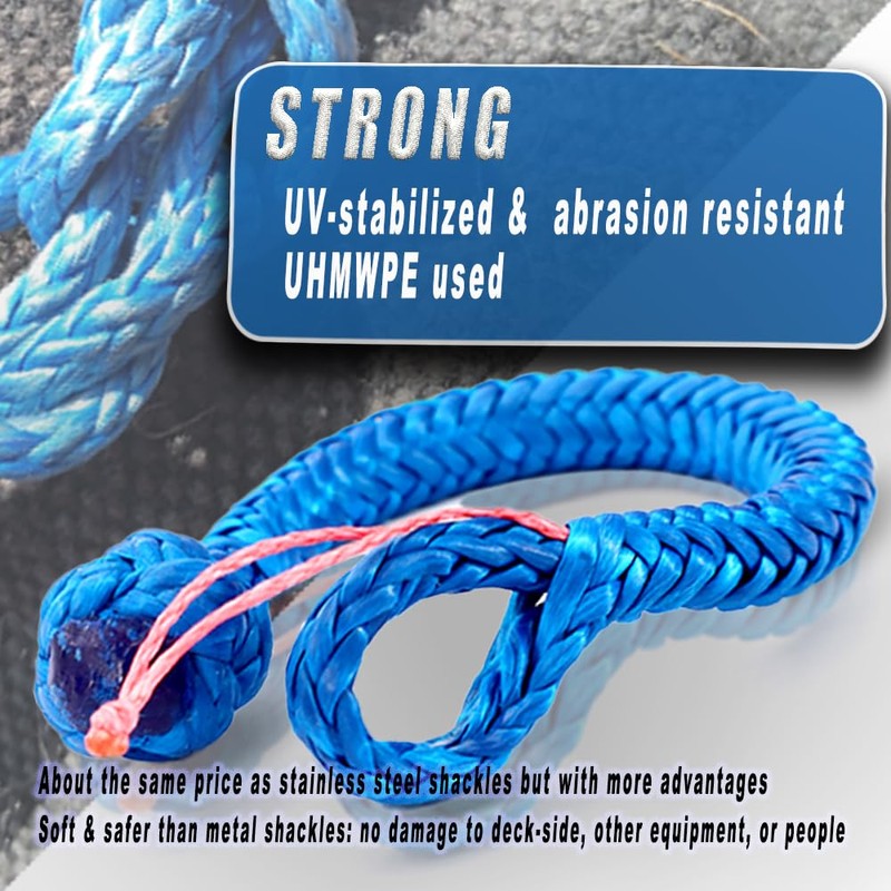 - SOFT & SAFE DESIGN Unlike traditional metal shackles, our soft shackles ensure no damage to deck sides, equipment, or personnel, providing a safer alternative for various applications.