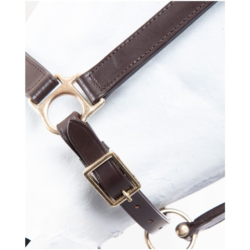 - Brass-plated fittings and multiple adjustability on headpiece and chin strap