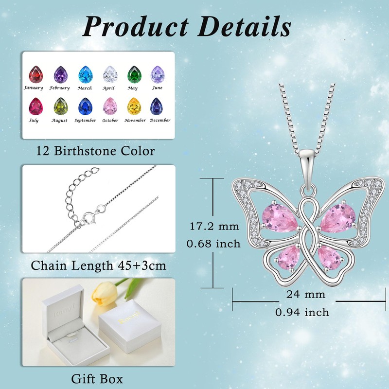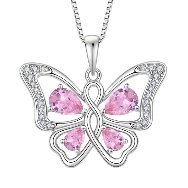 Rocayi Butterfly Necklace 925 Sterling Silver Pink Tourmaline Necklace October Birthstone Jewelry Gifts for Women Wife Girlfriend Mother Daughter
