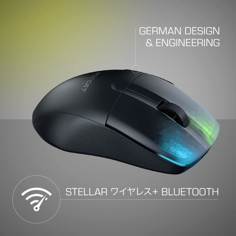 ROCCAT Kone Pro Air Gaming Mouse, Wireless, 2.4 GHz, Bluetooth, Black, Optical, 19K, Optical Switch, Side Buttons, Lightweight 2.6 oz (75 g), PTFE, Reflex, RGB, German Design