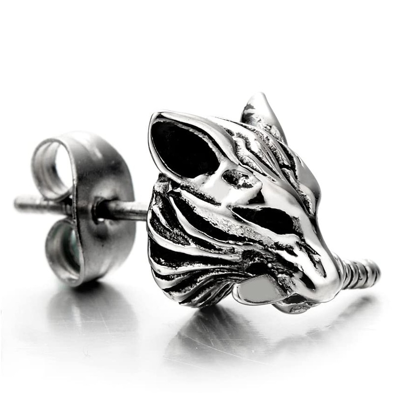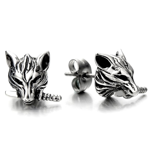 Rock Punk Mens Wolf Head Sword Stud Earrings in Stainless Steel, 2 Pcs(CA)