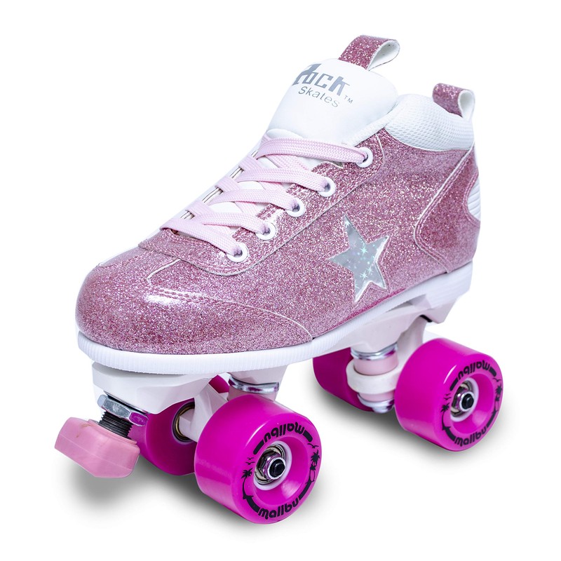 The glitter roller skates are perfect for recreational skaters. The deluxe sport profile design with lace closures give the boot comfort and support. Featuring 54mm cast urethane outdoor wheels for a smooth roll.