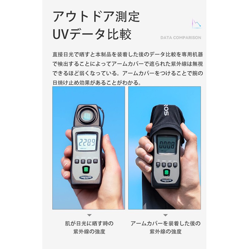 - UV Protection: The arm cover has UPF50+ and 5% of UVA, making it an excellent item for summer protection. Compared with the data measured by a UV dedicated measuring instrument, the ultraviolet strength will be significantly reduced after wearing this product. No need to repeatedly use sunscreen. Keep your arm from sunburn all day long as you put on the arm cover