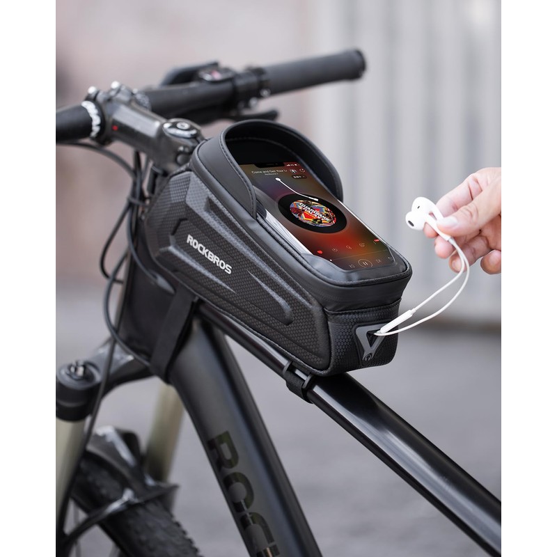 ROCKBROS Bicycle Bag, Top Tube Bag, Road Bike, Smartphone Holder, Waterproof, Frame Bag, Compatible with 6.1 Inches, Large Capacity, TPU High Sensitivity Touch Screen, Rain Cover, Light Blocking,