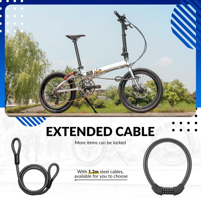 - MULTI-PURPOSE: The cable lock is 870mm long, can be lock road/mountain bikes, motorcycle, skateboards, scooter, doors, lawnmowers and many others