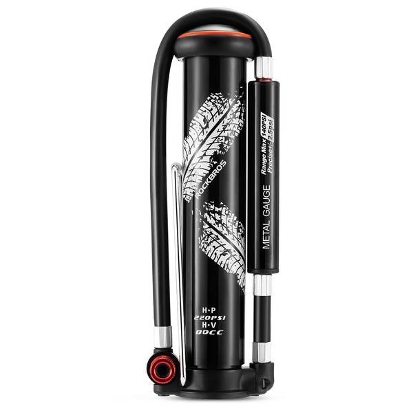 - 【MULTI-FUNCTIONS】Our ROCKBROS bike air pump has a T-shaped air nozzle and fits presta and schrader valves, you don't need to change adapters to inflate your tires. Apart from for bicycles, you can also use the pump for football, basketball, volleyball, motorcycles and so on.