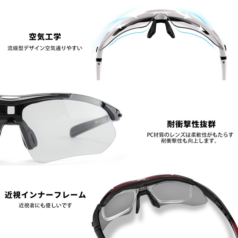 Rockbros Dimming Sunglasses, Bicycle Sunglasses, Sports, Discoloration Lens, UV Protection, Windproof, Lightweight, Shockproof, Mountain Climbing, Baseball, Day and Night Unisex Glasses, white