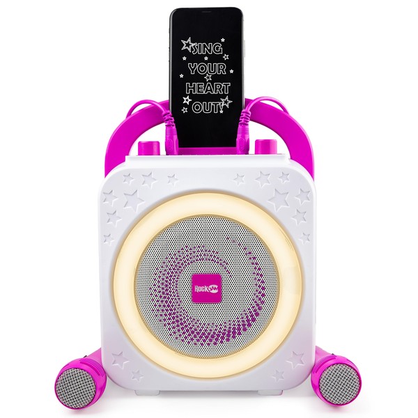 RockJam 10-Watt Rechargeable Bluetooth Karaoke Machine with Two Mics, Ring Light & Voice Effects