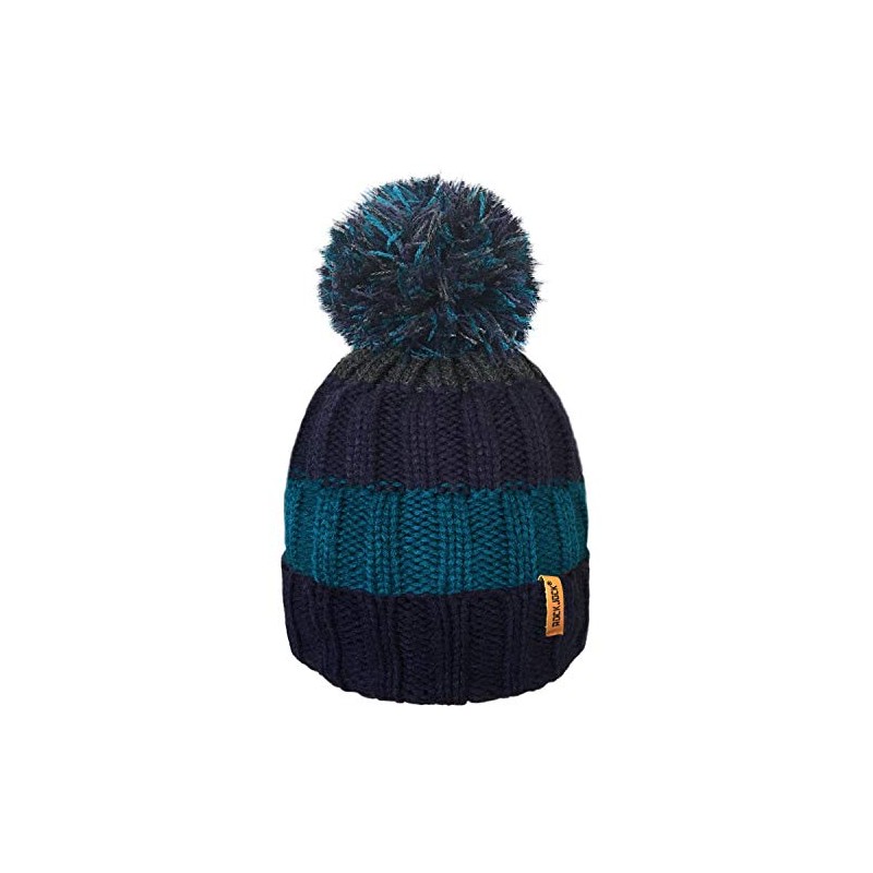 RockJock R80 Thermal Insulating Striped Beanie Bobble Hat with Cosy Fleece Lining-Teal/Grey