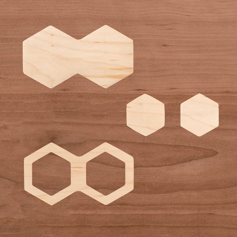 These two accessory templates work with our Bow Tie Inlay Starter Kit (#65846, sold separately) to create hexagonal bow ties, or inlay keys. Inlay keys can be used to add a decorative element or to span a crack in a board and keep it from opening further. The templates can be used in various ways to create separate hexagons, mirrored pairs, or a honeycomb pattern that can be expanded into any size. Our Inlay Starter Kit (#65846) lets you rout both the inlay keys and the matching mortises using the templates. Features: Allows routing of nested hexagons separately, in pairs, or in a honeycomb patternChevron cutouts in template provide easy, consistent alignment Great for decoration or to prevent splits and checks from growing largerTemplates fit into the frame/holder included with Bow Tie Inlay Starter Kit (#65846, sold separately)All templates made from durable 6mm thick acrylic with screen-printed cross marks for easy alignment and centering