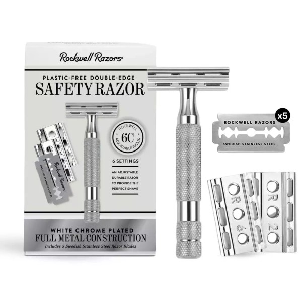 - CLOSE, COMFORTABLE SHAVE EVERY TIME - Made from a durable alloy in a striking chrome finish, the Rockwell 6C safety razor eliminates skin irritation and in-grown hairs to deliver the best shaves you've ever experienced.