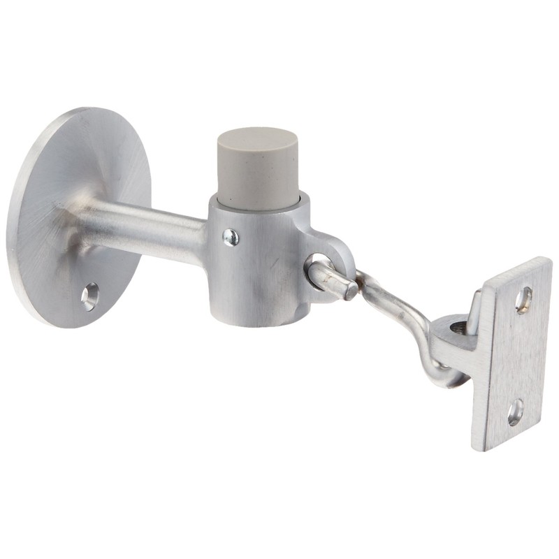 Rockwood 473.26D Brass Door Stop with Keeper, #8 x 3/4" OH SMS Fastener with Plastic Anchor, 2-1/2" Base Diameter x 3-3/4" Height, Satin Chrome Plated Finish