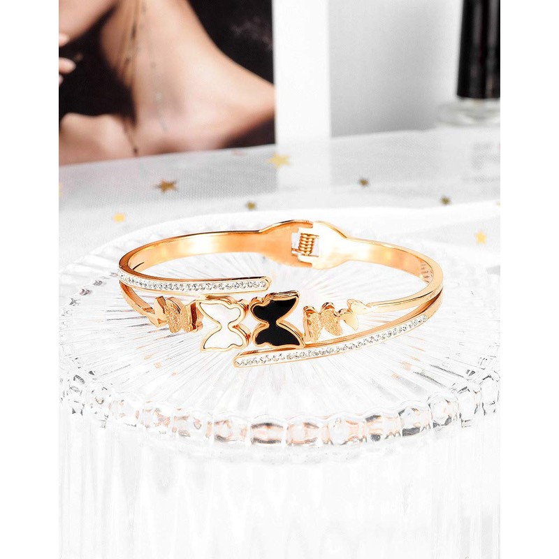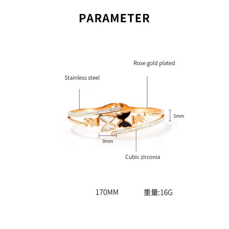 Rockyu Bracelet for Women Pink Gold 18k Plated, Zirconia, Titanium Bracelet, Cute, Butterfly Bangle, Bling, Fashion, New York Style, Titanium, cubic-zirconia