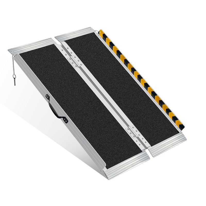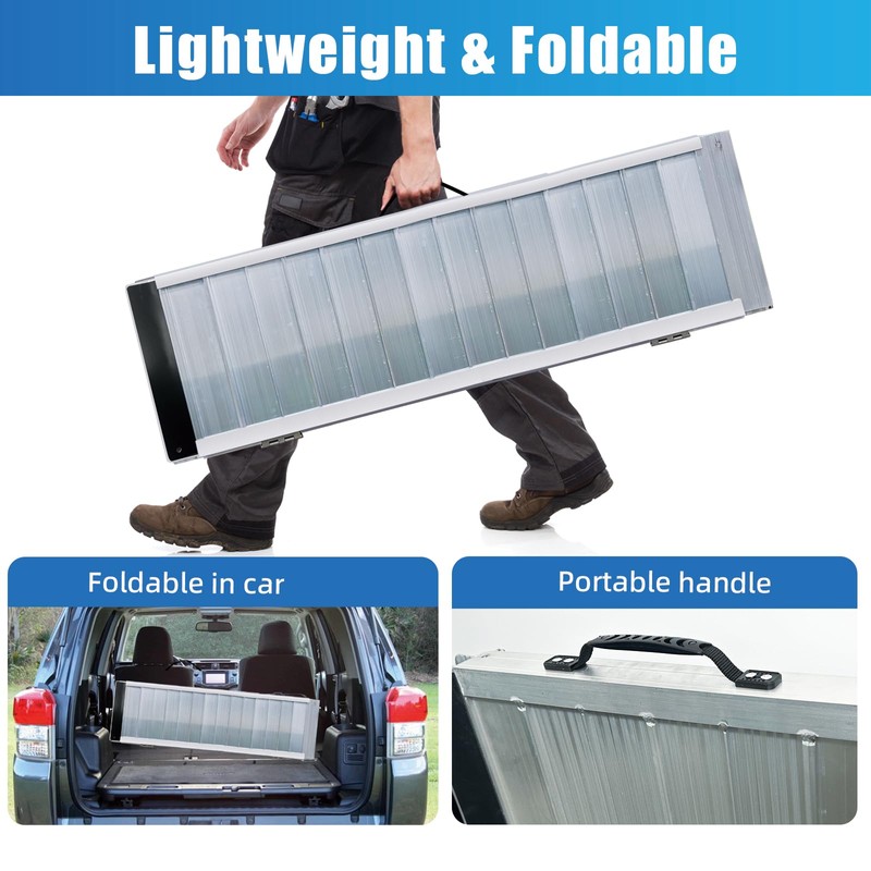 - 【Sturdy and Stable】Crafted from high-quality aluminum alloy, this portable wheelchair ramp is built to last—capable of supporting up to 800 lbs. Equipped with sturdy stainless steel hinges, it ensures exceptional durability and long-lasting performance. Perfect for wheelchairs, scooters, and even pets or elderly users, it delivers reliable stability for everyday accessibility needs.