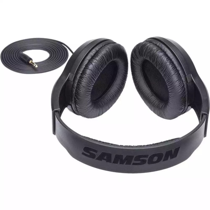 The Samson SR350 Over-Ear Stereo Headphones, styled in elegant black, offer an immersive audio experience. These circumaural, closed-back headphones are equipped with 35mm drivers and cover a comprehensive 20 Hz to 20 kHz frequency range, making them suitable for a variety of audio monitoring tasks.