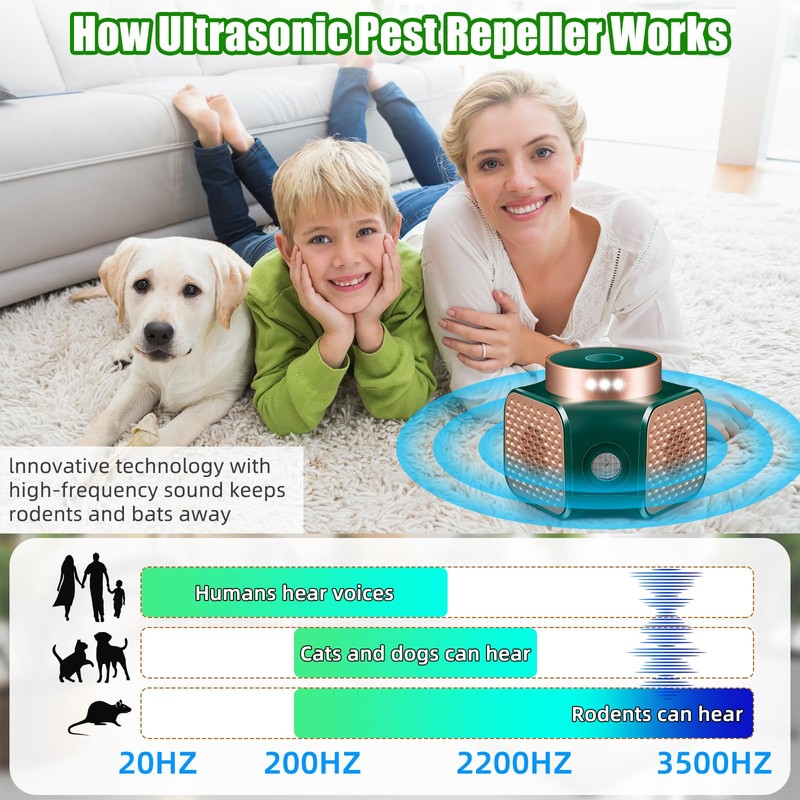 - Efficient Property Protection: Simply plug the electronic rodent repellent device into any 100-240v outlet in areas like attics, garages, basements, storage rooms, or RVs. This modern solution provides an economical alternative to traditional rodent control methods while safeguarding your property from potential damage, giving you lasting peace of mind
