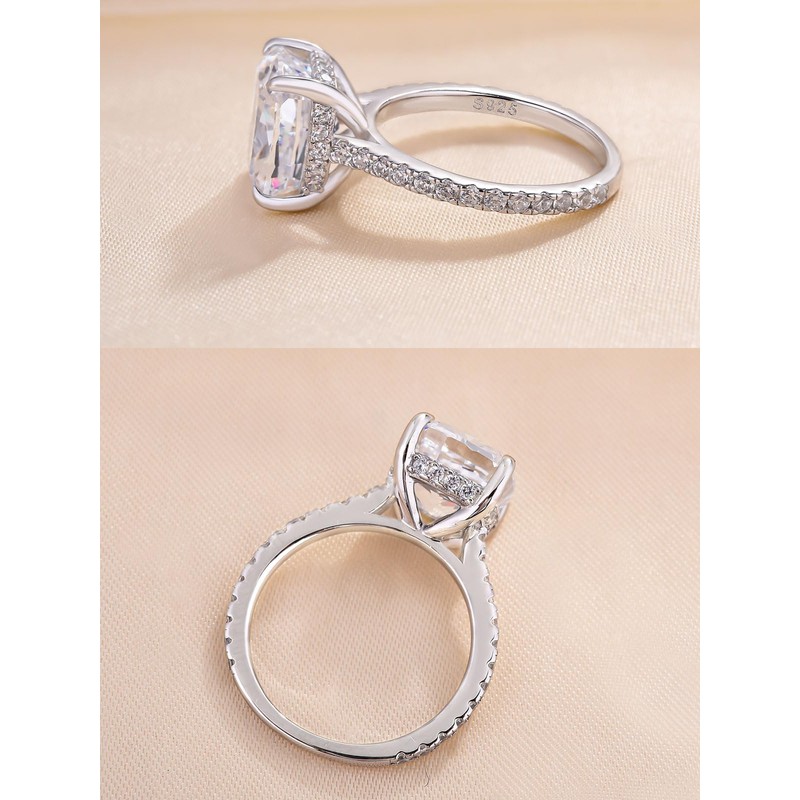 RODIFFY 4CT Cushion Cut Solitaire Engagement Ring,Silver CZ Simulated Diamond Promise Ring(Size:6)