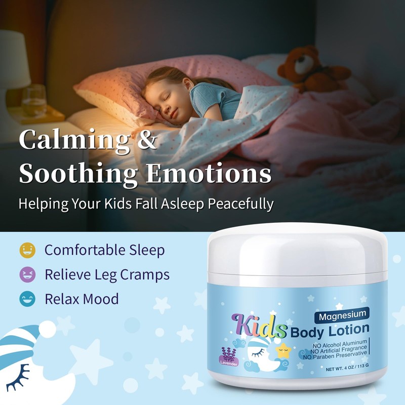 - MAGNESIUM LOTION FOR SLEEP & HEALTH: Do you find pre sleep excitement and leg cramps in your kid? You can try magnesium lotion. It can help kids calm their emotions, provide better sleep, support bone and muscle health and relieve leg cramps