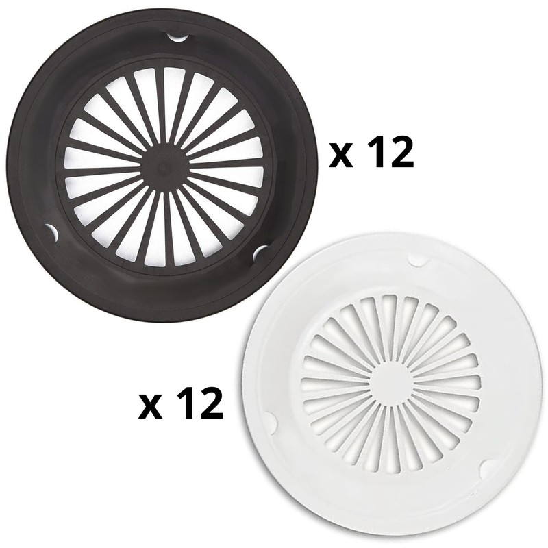 - CONTENT: Set of 24 plate holders in an assortment of 12 black and 12 white.