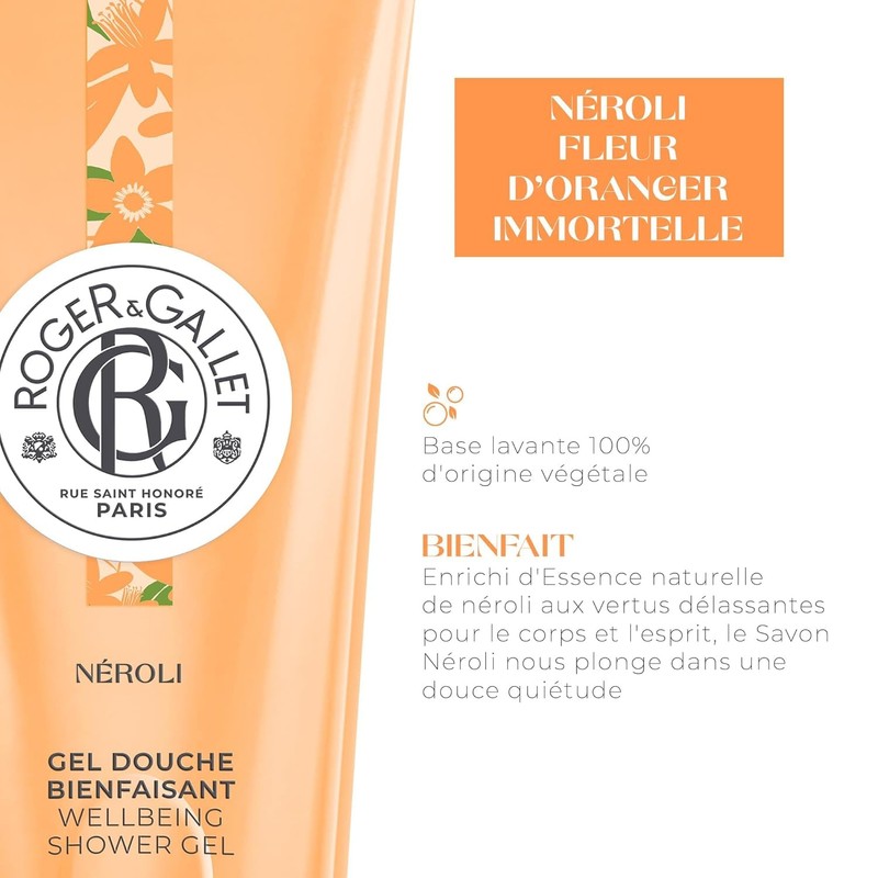 • The RogerandGallet Neroli Shower Gel with its creamy foam invites us to a sun bath revealing the honeyed and milky scents of the orange blossom