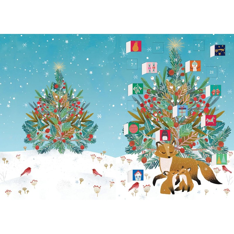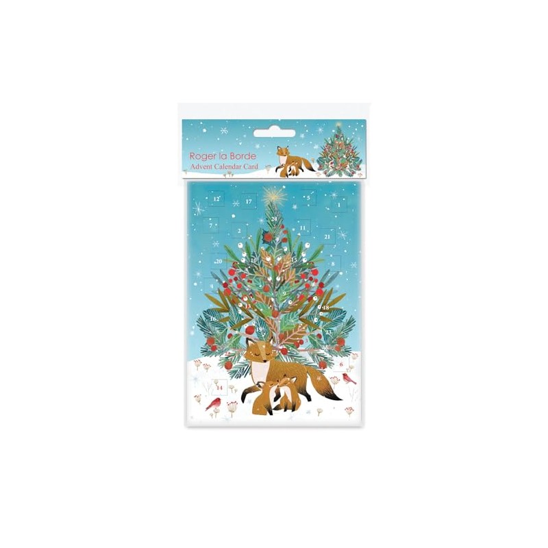 Roger La Borde - Beneath the Tree Fox Pack - Advent Calendar Card - ACC105 Celebrate the festive season with Roger la Borde's exquisite advent cards, designed to captivate and enchant with their quirky, artsy, and beautiful illustrations. Each card, measuring 17 x 12 cm, features unique Christmas designs that bring a touch of magic and creativity to your holiday decor. These advent cards are perfect for adding a whimsical charm to your Christmas celebrations, making them a delightful gift or a cherished keepsake.