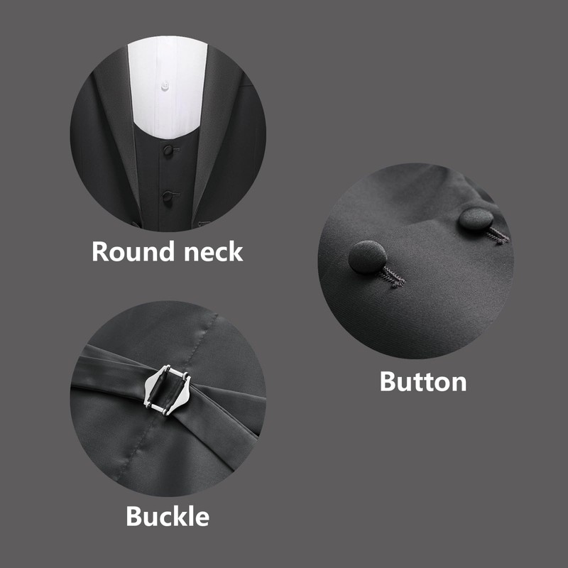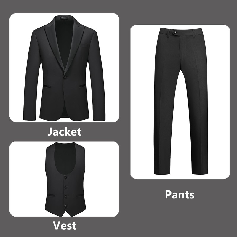 - INCLUDING- This 4 piece set includes Tuxedo Jacket, Vest, Black pants and black bow tie. If you have any question about size choosing pleast let us know.