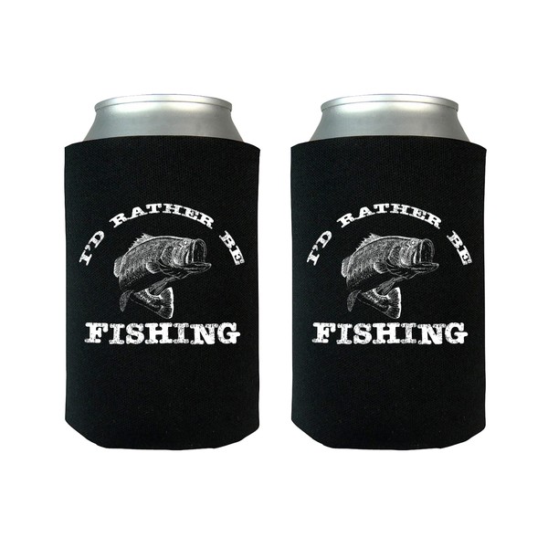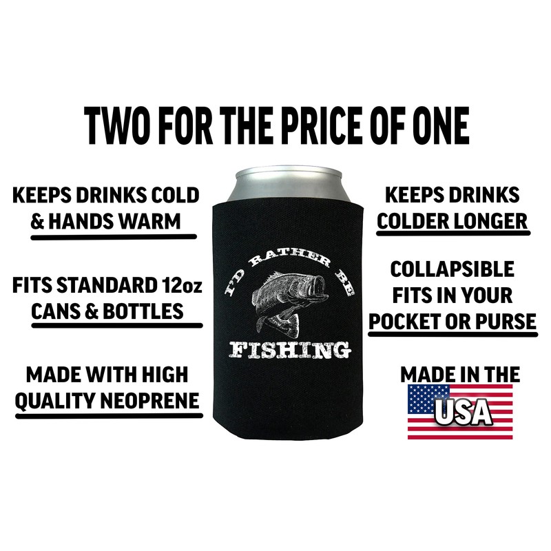 Rogue River Tactical Funny Fishing I'D Rather Be Fishing Joke Collapsible Beer Can Bottle Beverage Cooler Sleeves 2 Pack