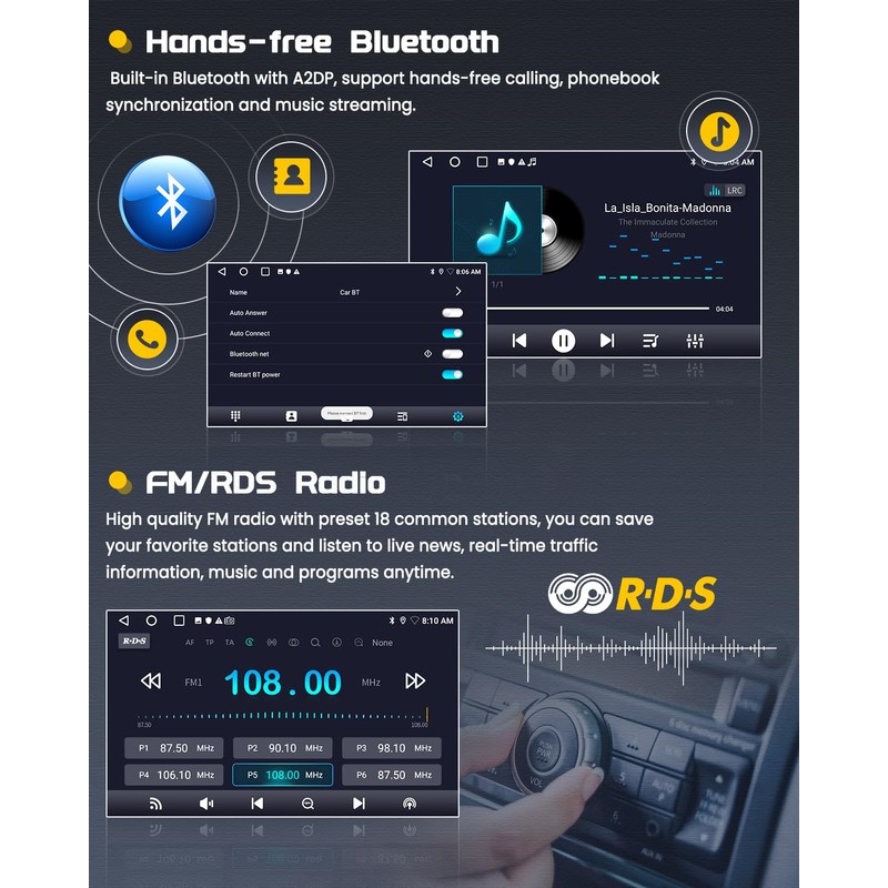- Wireless/Wired CarPlay & Android Auto: For hyundai sonata car stereo supports IOS CarPlay and Android Auto. Connect your phone and for hyundai sonata car radio with Bluetooth (Wireless) or original USB data cable (Wired), and gives you an incredibly intuitive way to navigation, make calls, send and receive messages, listen to music. You can also be able to wake up the Siri/Google assistant to operate apps on your phone while driving to keep safe