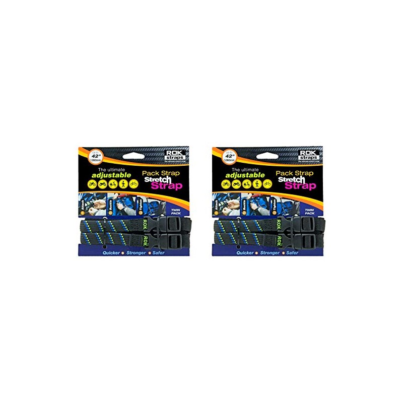 ROK Straps 10305 Adjustable Pack Stretch Strap for Motorcycle/ATV, 42" | Flat Cargo Bungee Tie-Downs (Blue/Green/Black, 2 Pairs)