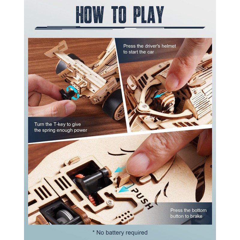 - [1:18 Racing Car] Formula racing cars are iconic single-seaters, built for speed and agility from 20th century beginnings to today's motorsport legends. ROKR has created this highly accurate model kit, wind up to travel up to 25 feet.