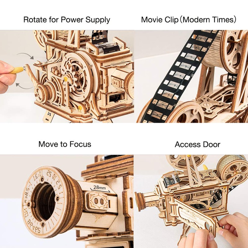 ROKR Vitascope Holzpuzzle, Mechanische Modellbausätze, Technischer Modellbausatz, Hand-Generator Klassischer Filmprojektor für Erwachsene und Jugendliche